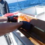 Anglers were divided into three groups:  Those fishing with lures, fishing with squid and others fishing with shrimp flies threaded with squid.  Once hooked the fish were reeled slowly to the surface, identified, measured, tagged and then carefully descended back to the bottom.  Scientific data collected from this and other trips will be used to access the effectiveness of the closures and help to guide the State toward proper management.