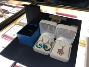Hers: Bob Cox Bonecarver and Bluewave jewelry
