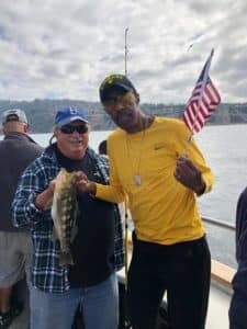 All of these Vets were in very high spirits aboard the Betty-O, owned and captained by Mike Reinsch, operating out of Marina Del Rey. The Calico bass and sand bass cooperated the entire day as if they knew who was on the other end of the line. The highlight of the trip was watching Paul, a 97 year old World War II veteran who participated in the Normandy invasion, catch fish after fish, thoroughly enjoying his day on the water. While the bass dominated the catch, the vets also caught bonito, whitefish, sand dabs, and the occasional bird.