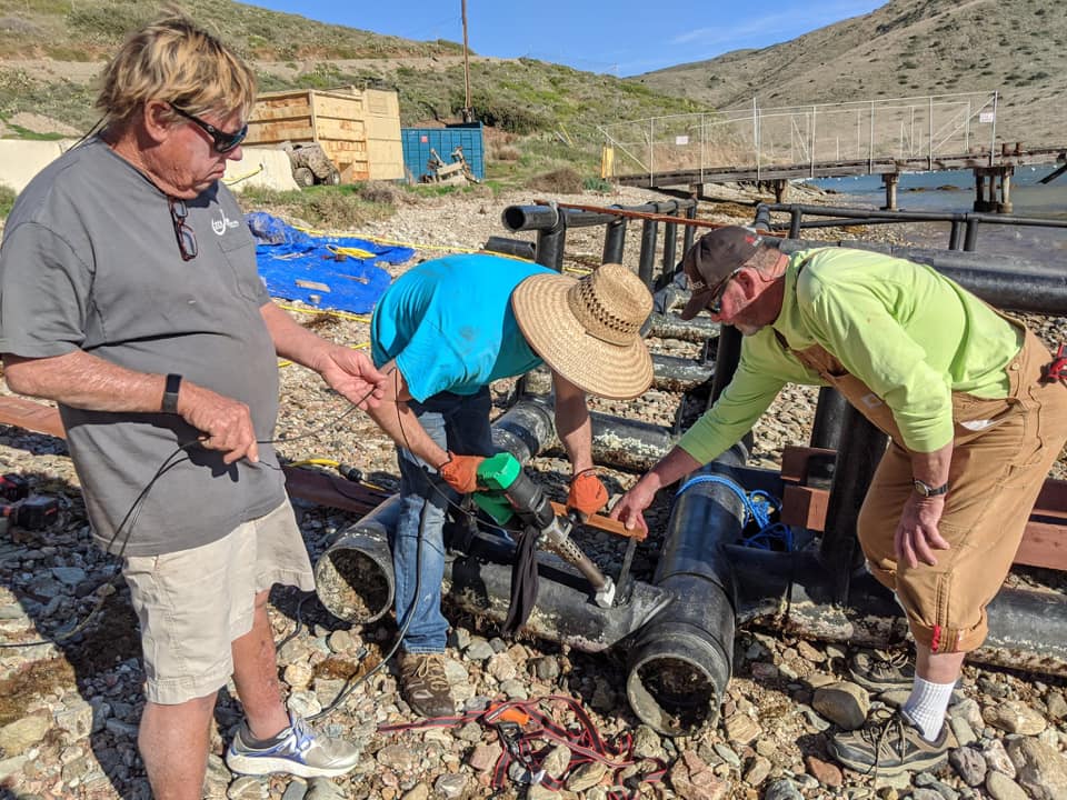 With the new repairs being done, the facility will be ready to accept over 20,000 cultured juvenile white sea bass to hold and grow before being released and replenishing wild stock numbers off the coast. A big thank you goes out to our team of volunteers, led by San Diego Chapter VP Steve Mote.